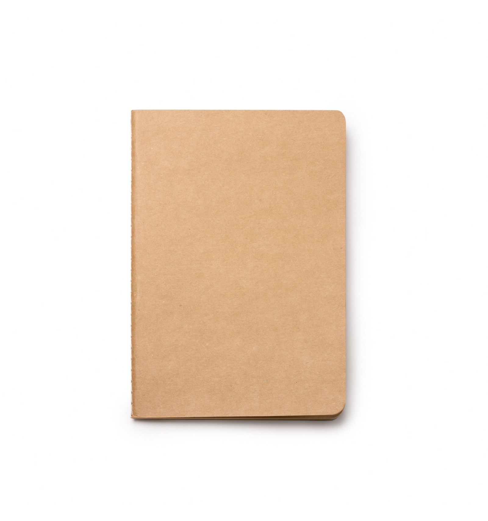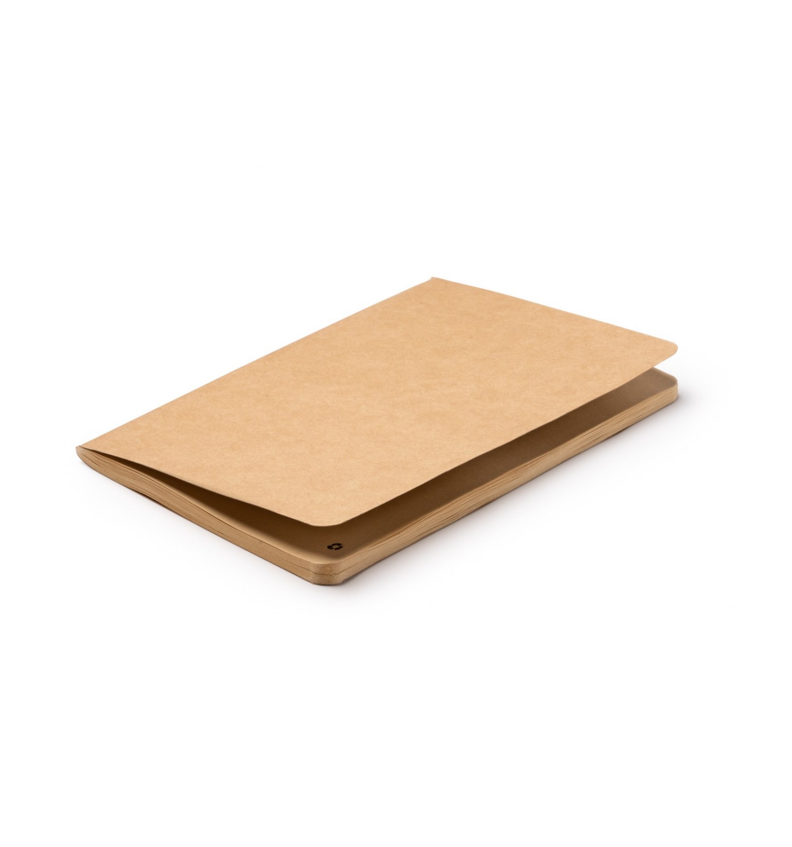Caiet A5 cu copertă tare din carton reciclat și hârtie reciclată FSC în interior.
