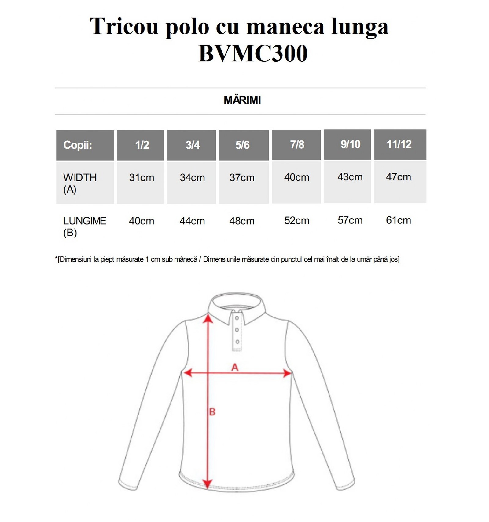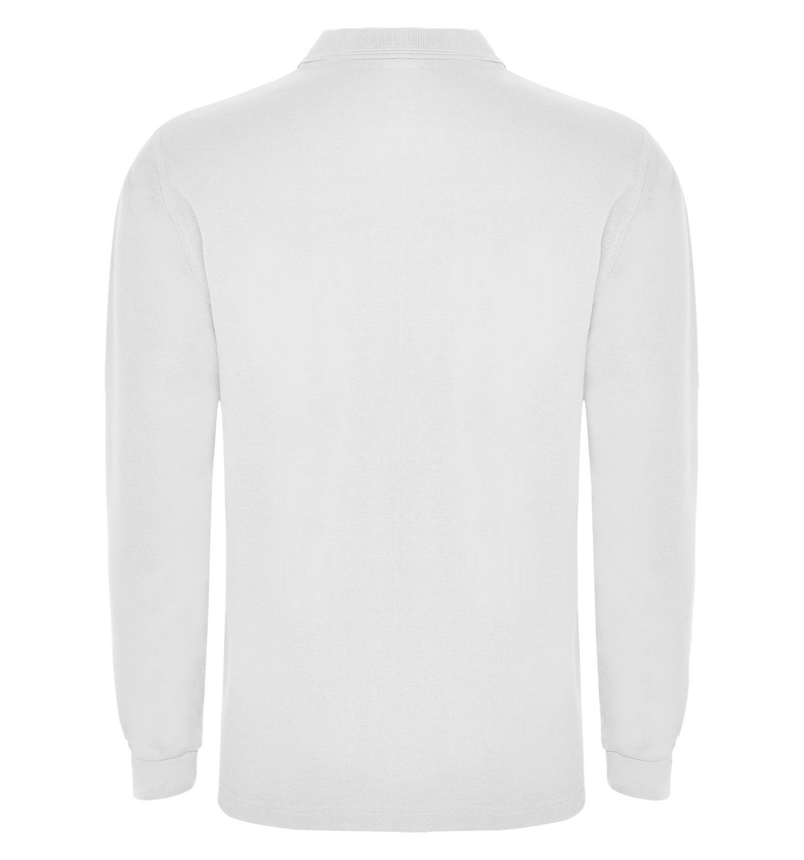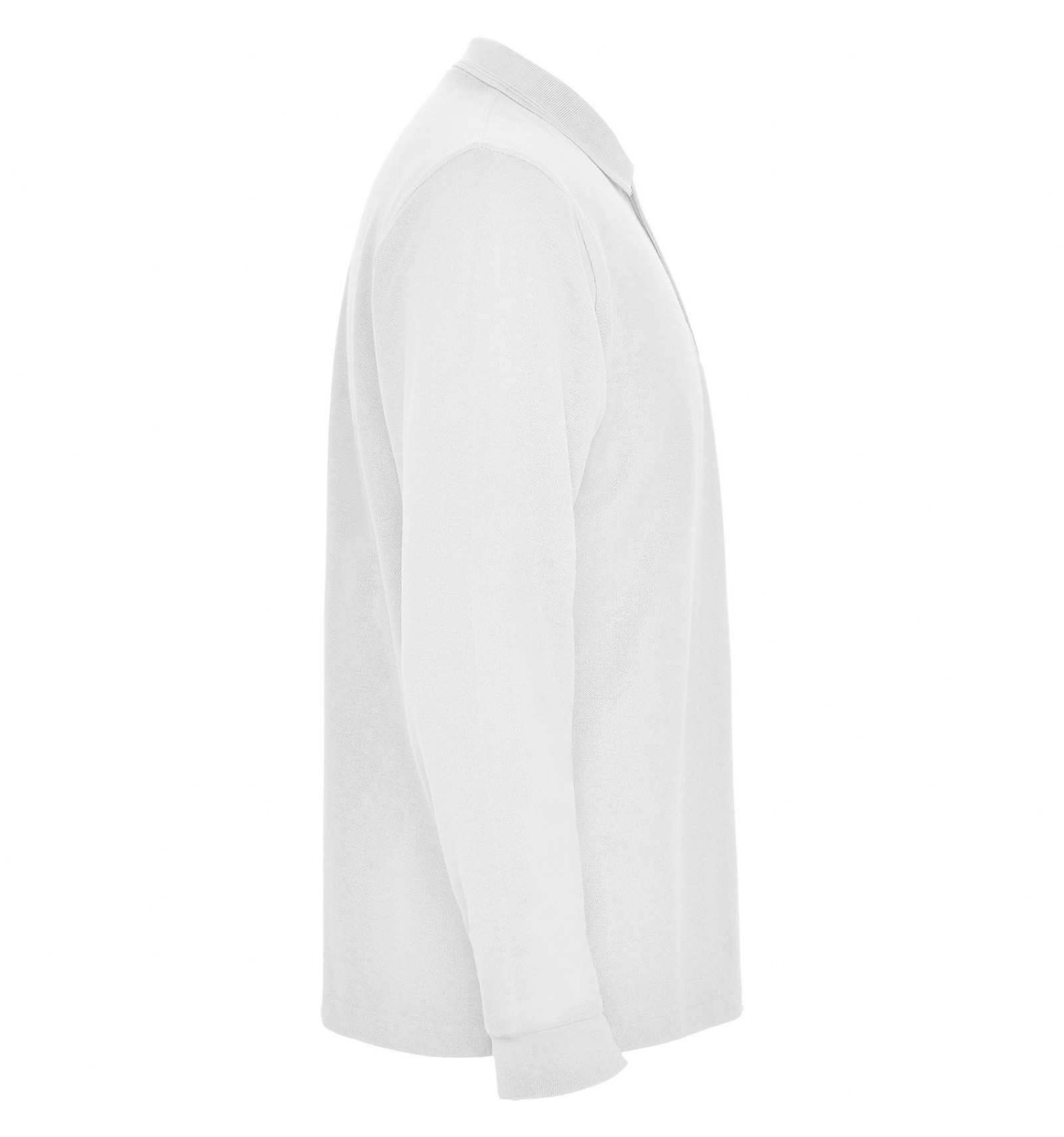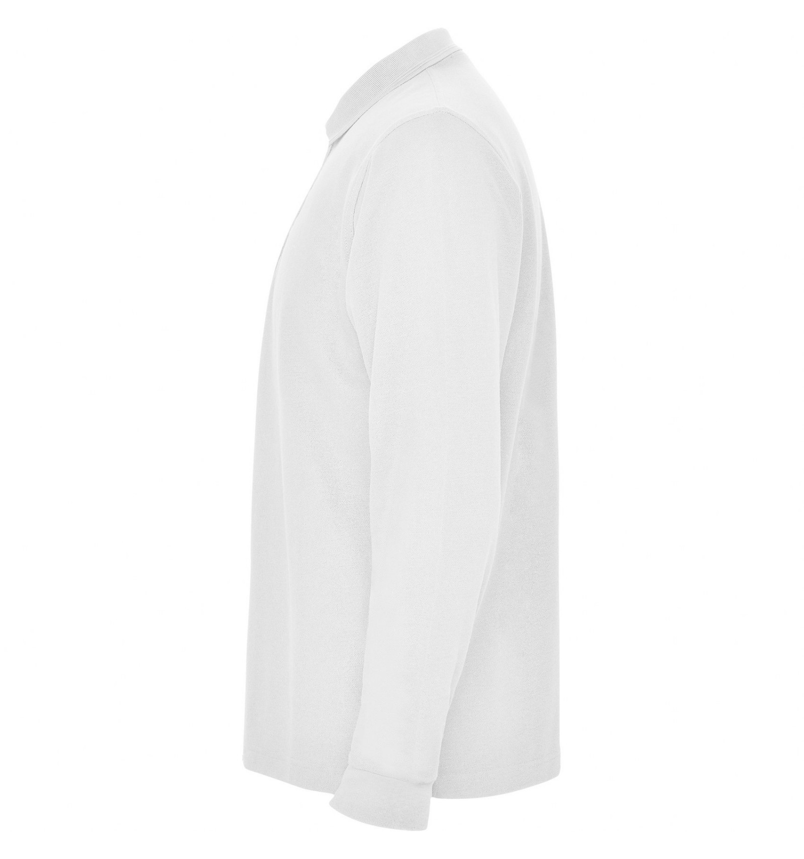 Tricou polo cu mânecă lungă, guler și manșete canelate 1x1 cu elastan și bandă întărită pentru acoperirea cusăturii la guler. Fantă cu 3 nasturi. Șlițuri laterale.