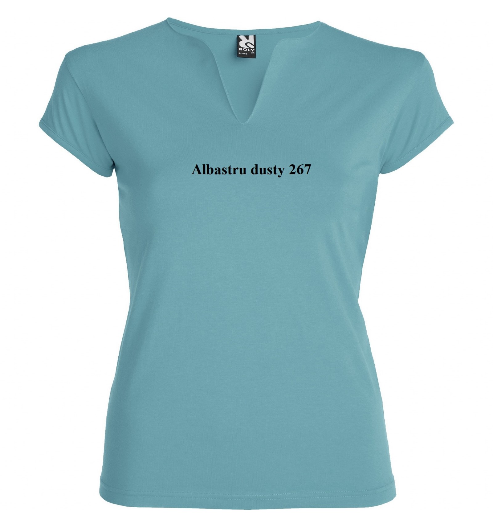 Tricou cambrat cu guler tunică, mânecă semi, garnitură lată pe umeri și cusături laterale.