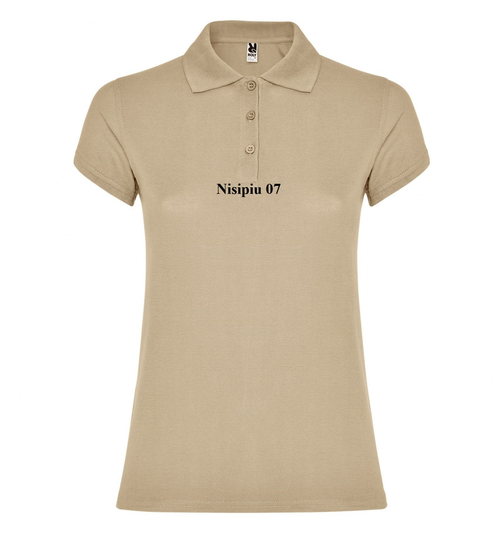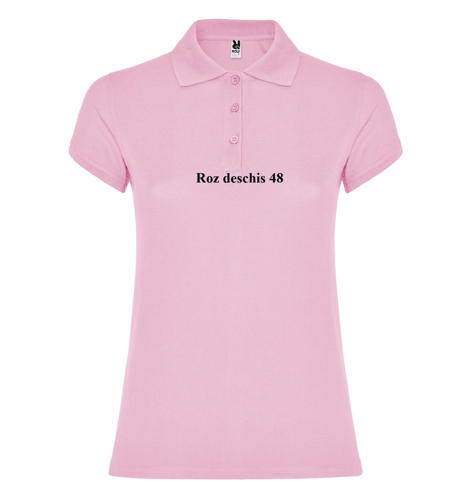 Tricou polo de damă cu mânecă scurtă. Bandă întărită pentru acoperirea cusăturii la guler. Guler și manșete canelate. Croială cambrată și cusături laterale. Fantă cu trei nasturi. Șlițuti laterale.