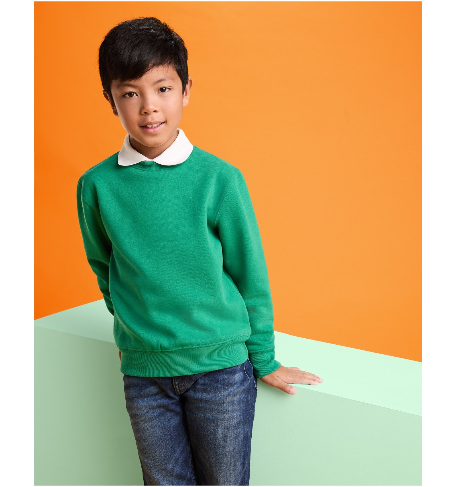 Hanorac cu guler, talie și manșete canelate 1x1 cu elastan. Bandă întărită pentru acoperirea cusăturii la guler.