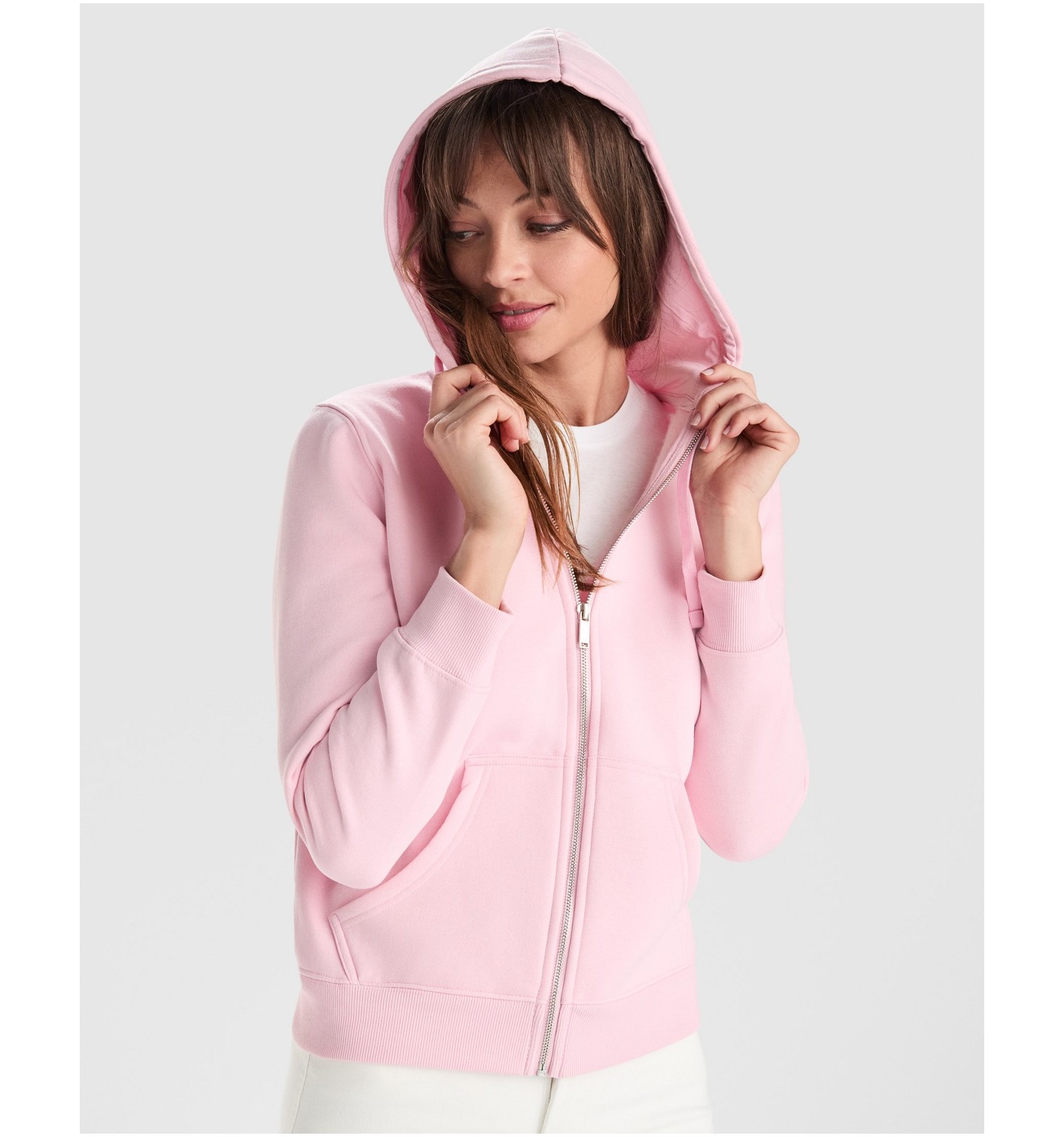 VELETA este un hanorac casual pentru dame, cu glugă căptușită de aceeași culoare, bandă întărită pentru acoperirea cusăturilor la gât și un design cambrat, numai bun pentru a vă putea desfășura activitățile de zi cu zi.