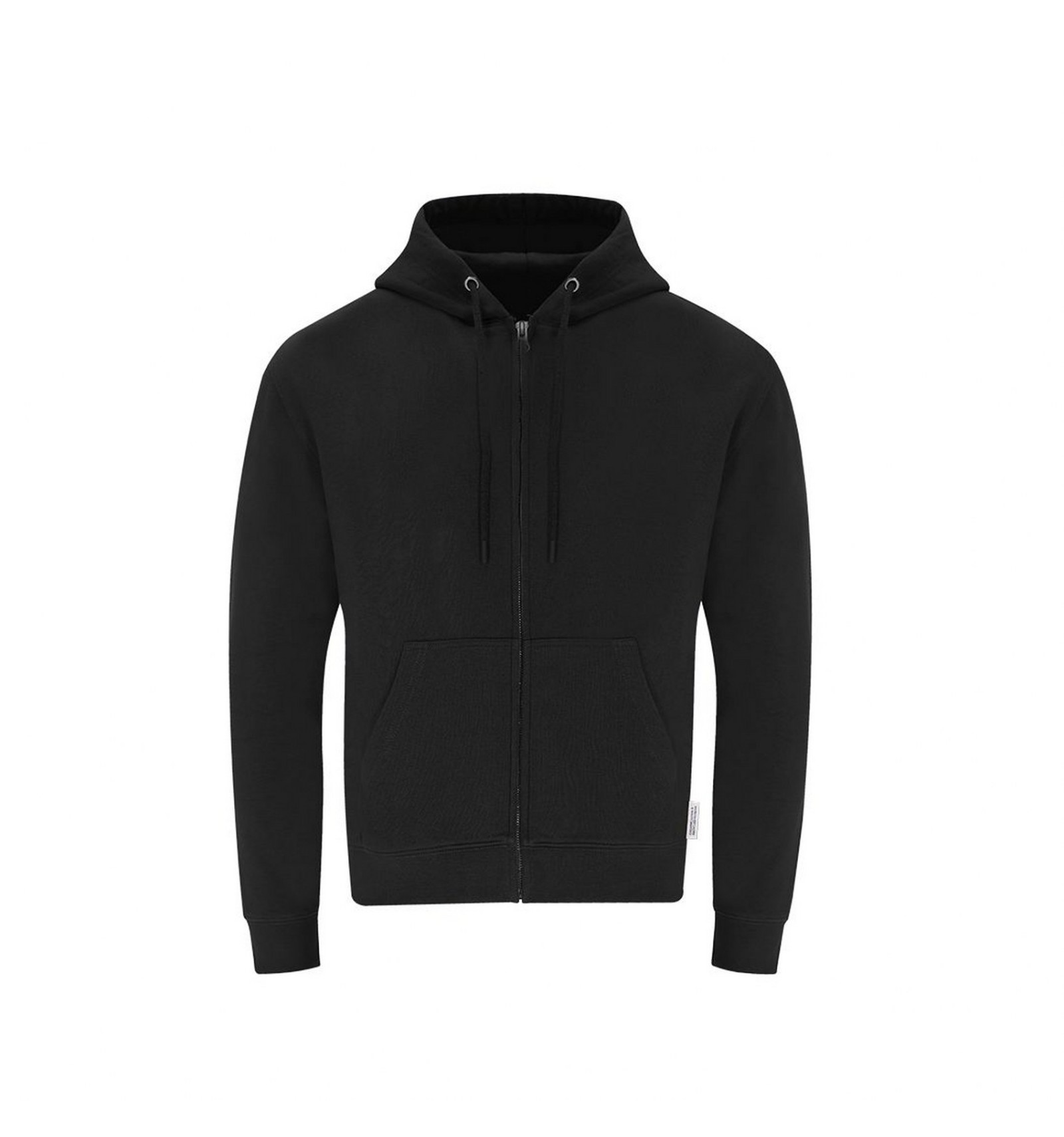 Manșete și talie cu nervuri din elastan și buzunar frontal tip cangur. Fermoar metalic ascuns, cu acoperire întărită a cusăturii la guler.