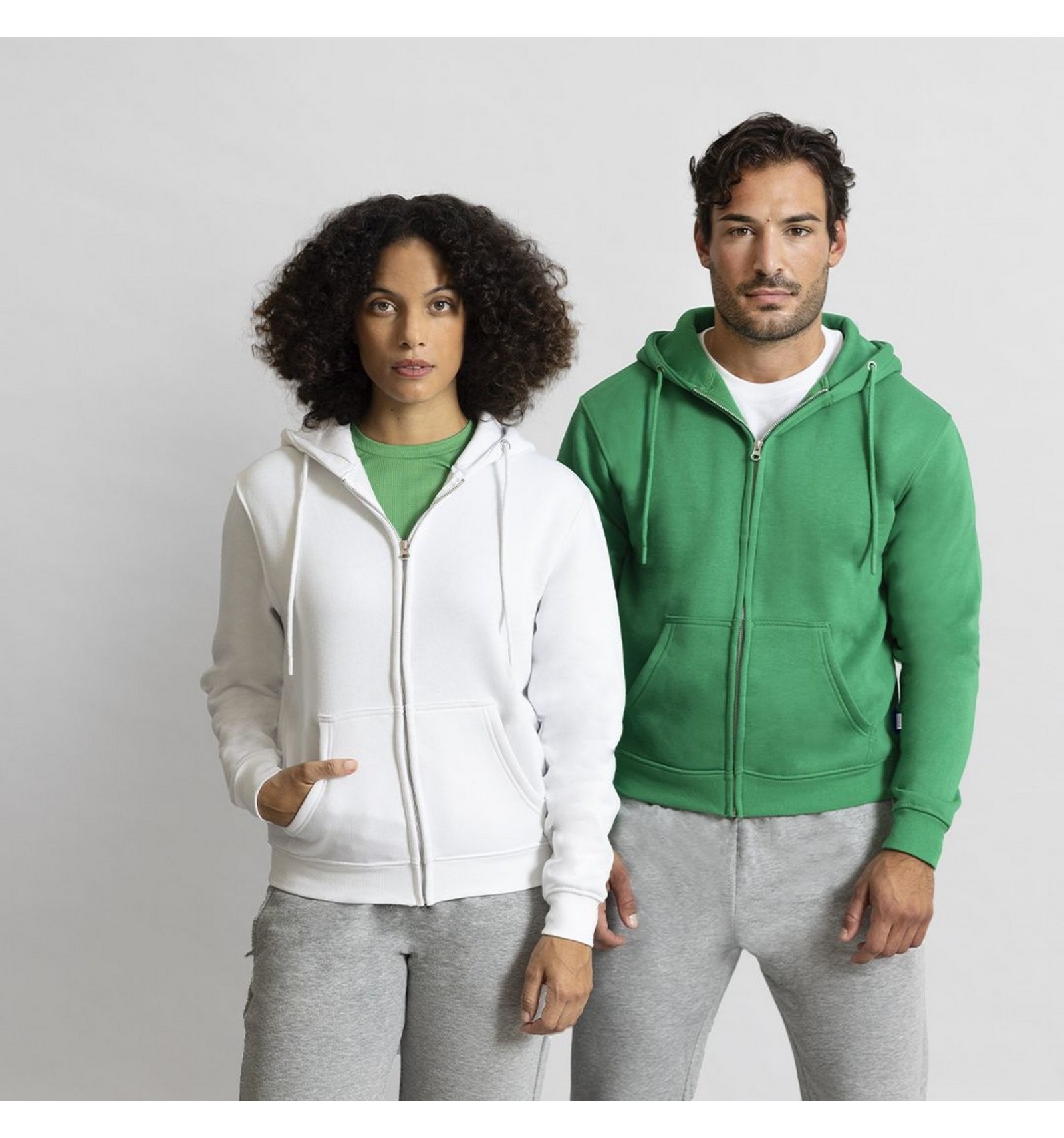 Hanorac unisex cu glugă și fermoar, din bumbac organic și poliester reciclat, din fleece matlasat moale de 280 gm2.