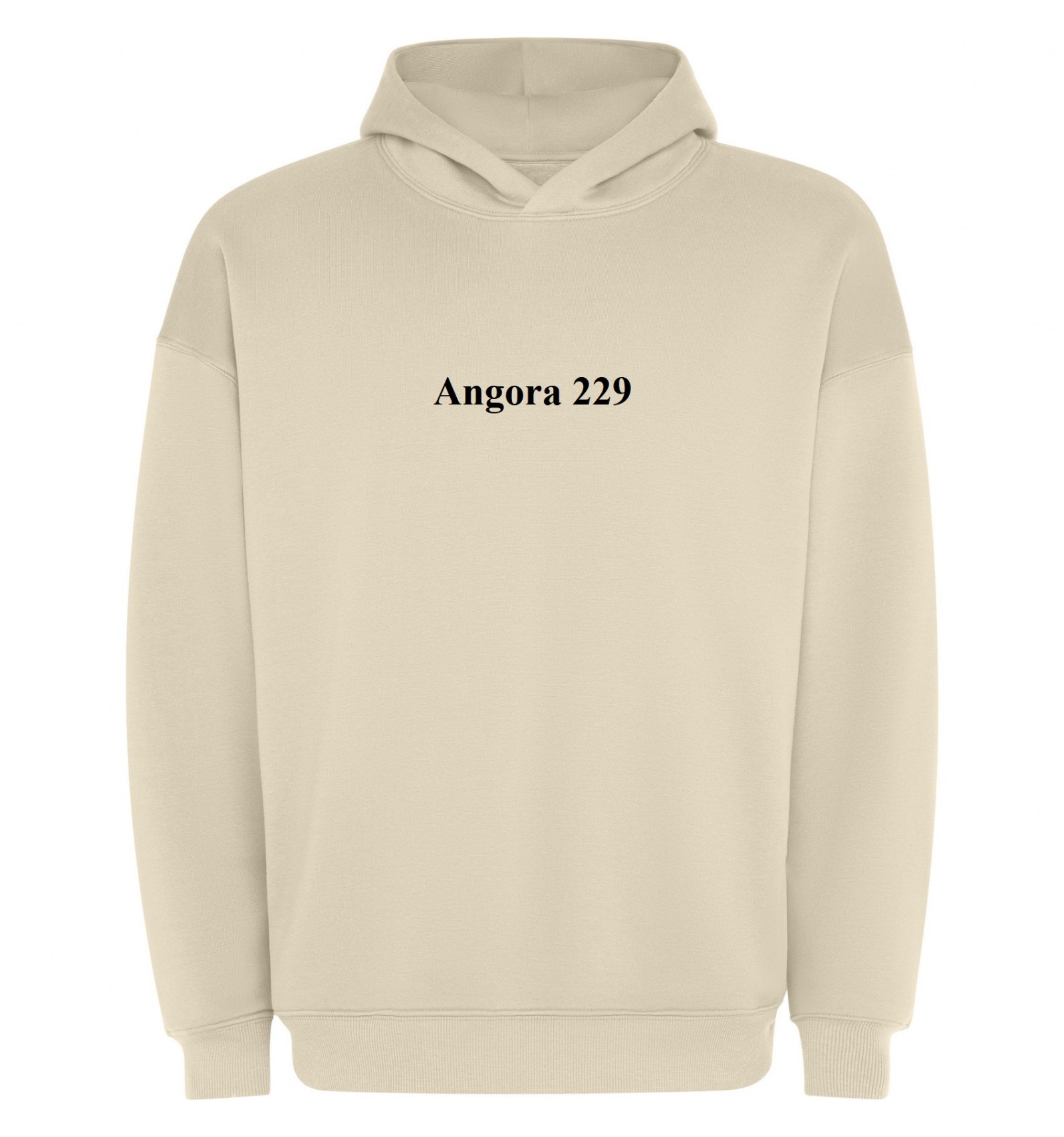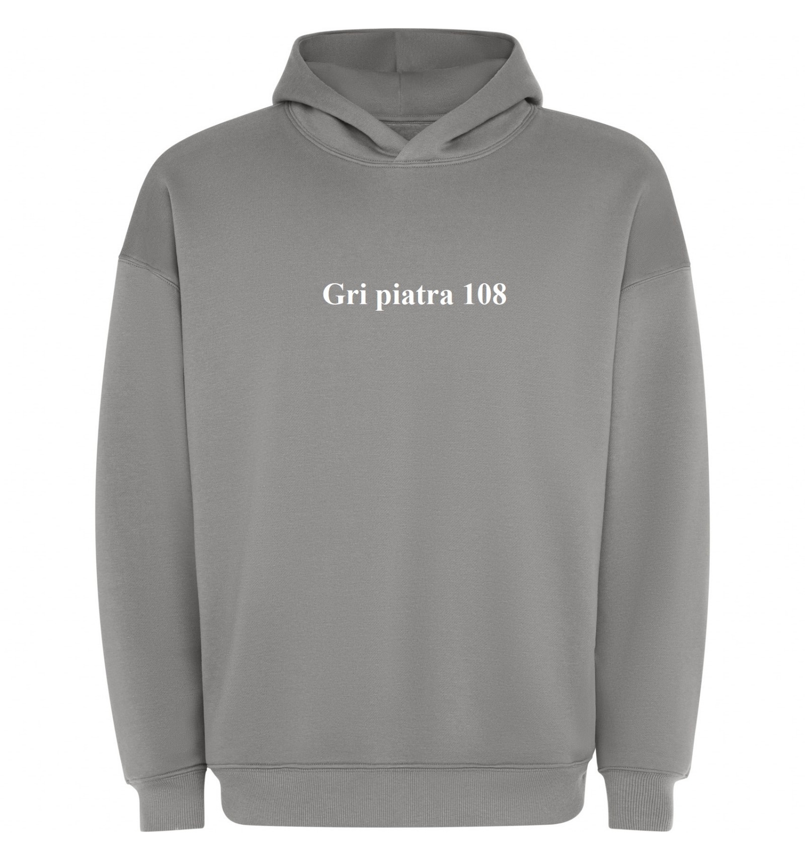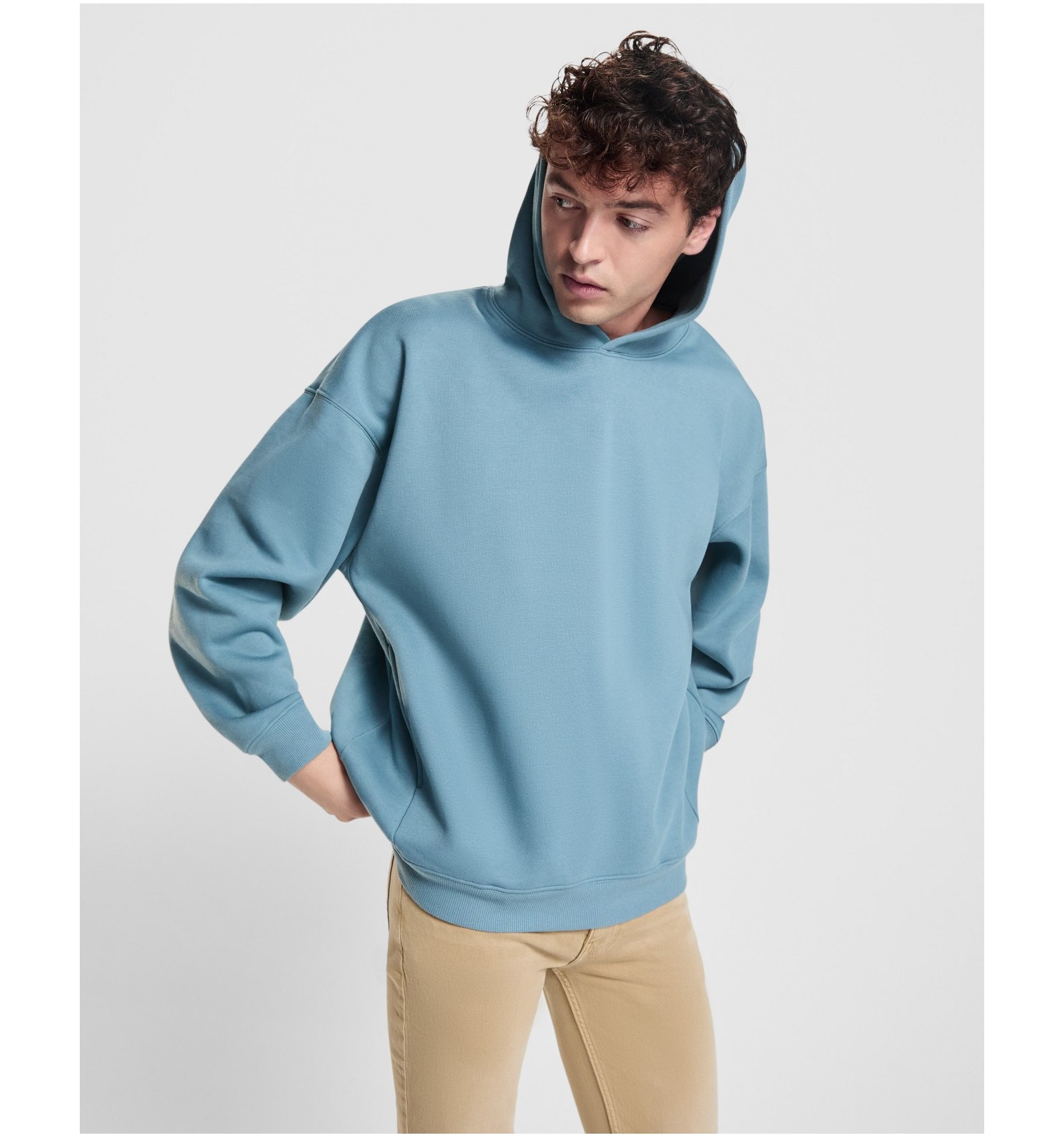 Hanorac unisex oversize, cu glugă căptușită din același material. Guler întărit cu bandă.