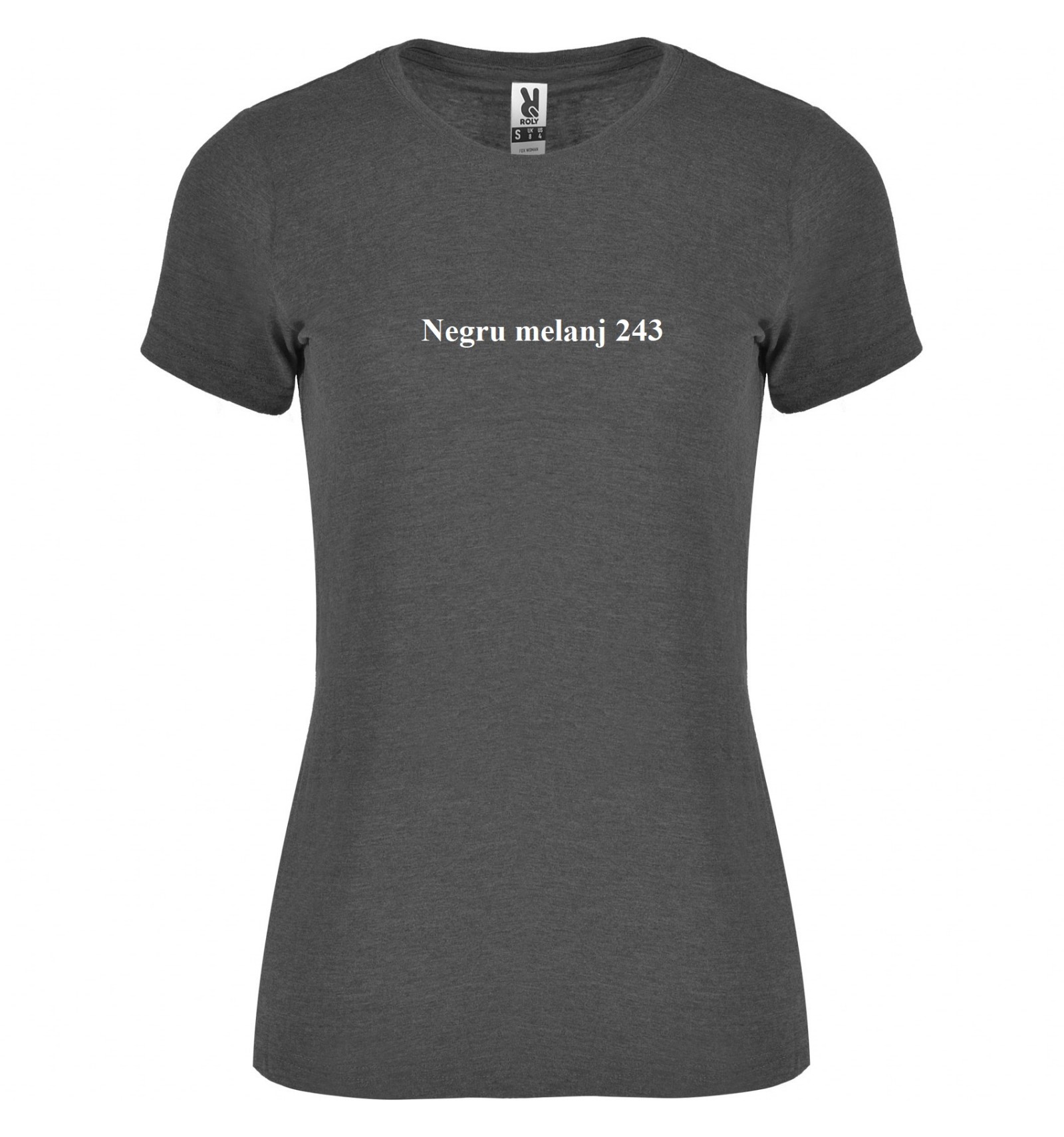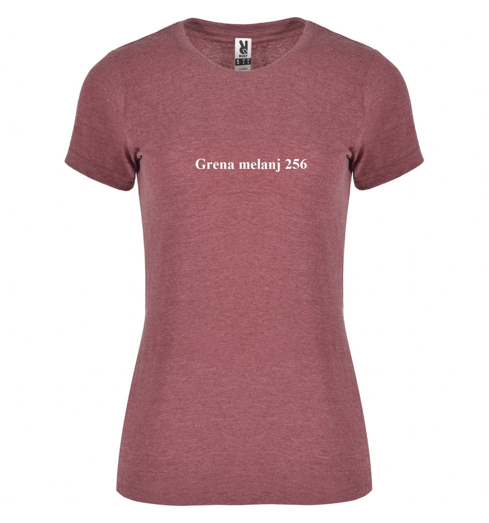 Tricou de damă cu mânecă scurtă, în culori melanj. Guler rotund în punct canalé 1x1 cu bandă întărită pentru acoperirea cusăturilor la interior.