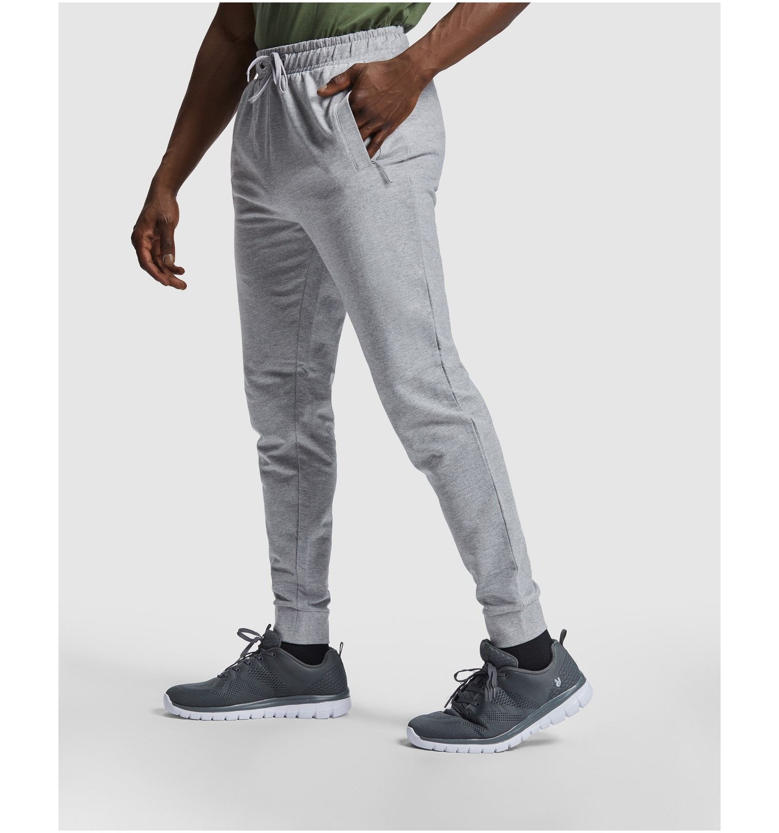 Pantaloni lungi de trening, cu betelie elastică lată reglabilă cu șnur, cu manșetă în partea inferioară, cusături întărite, buzunare laterale cu refileți și buzunar spate. Material respirabil.