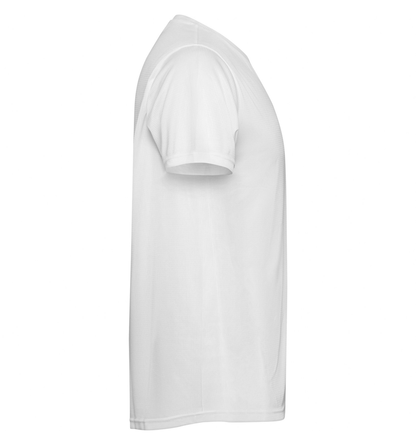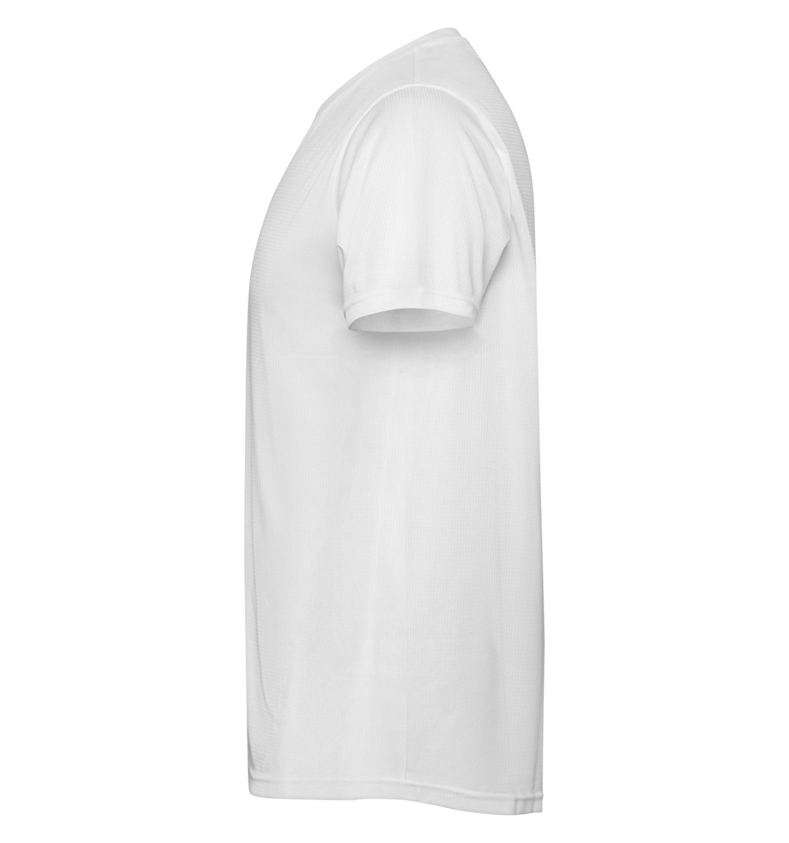 Tricou tehnic cu mânecă scurtă. Guler cu cusături în aceeași culoare.