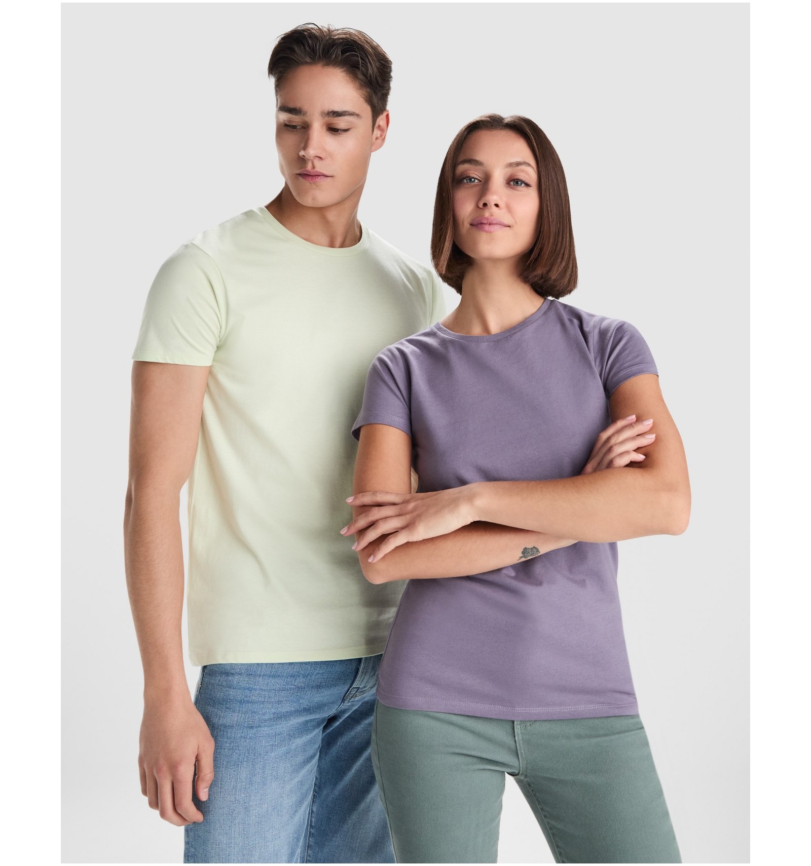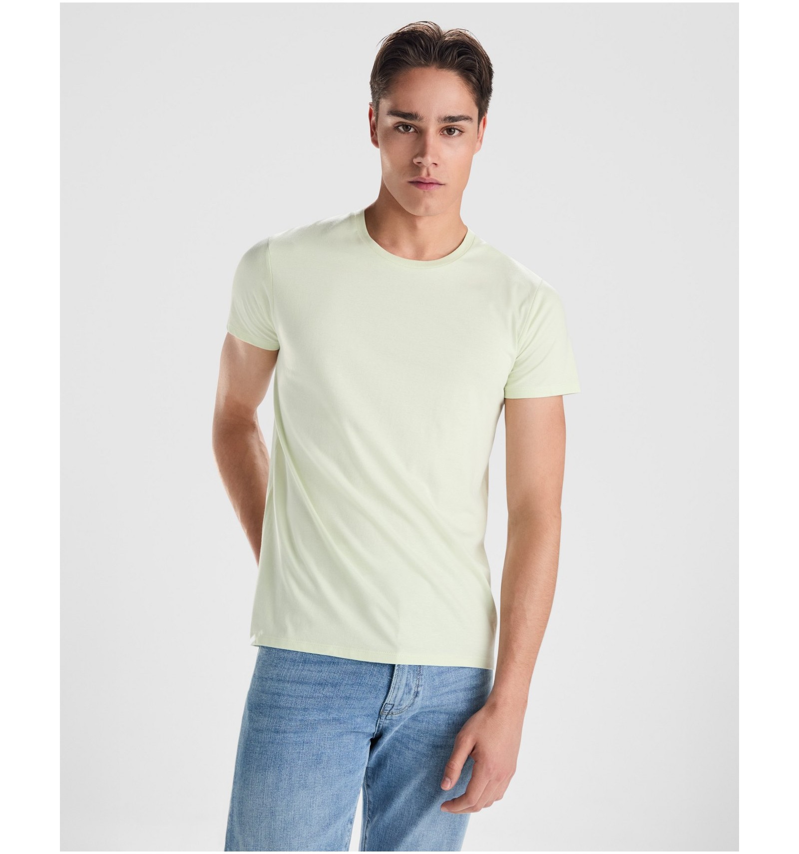 Tricou tubular cu mânecă scurtă din bumbac organic certificat OCS.1x1 decolteu rotund cu striații. Cusături acoperite întărite la guler.