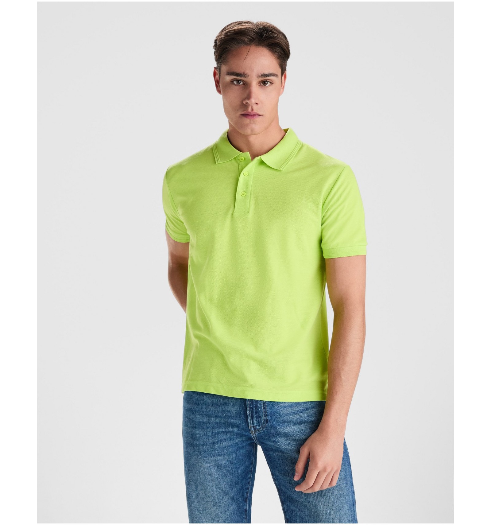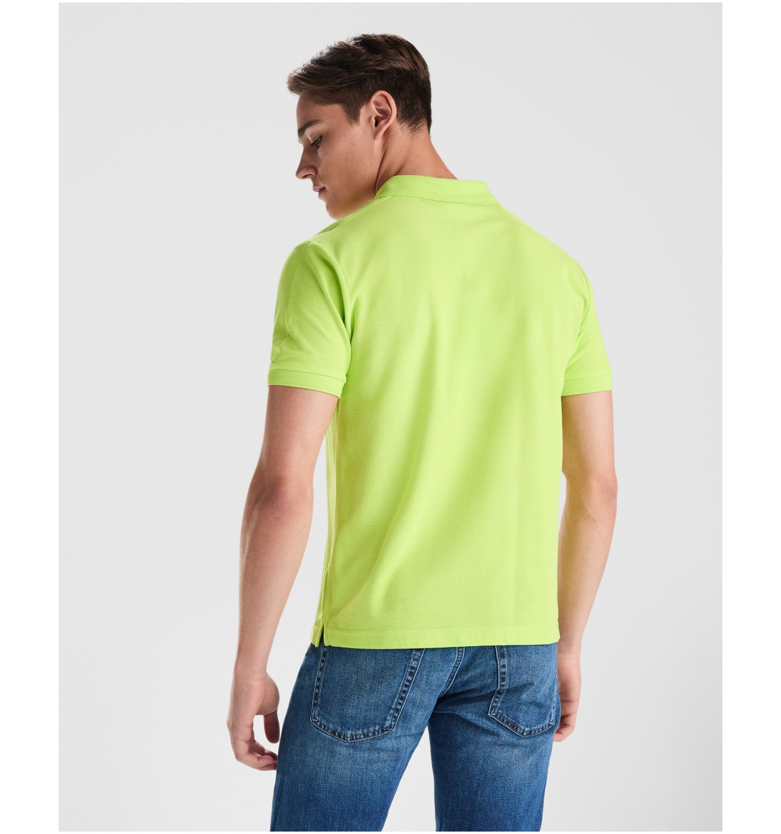 Tricou polo cu mânecă scurtă, guler și manșete canelate. Fantă cu 3 nasturi. Bandă întărită pentru acoperirea cusăturii la guler și șlițuri laterale.