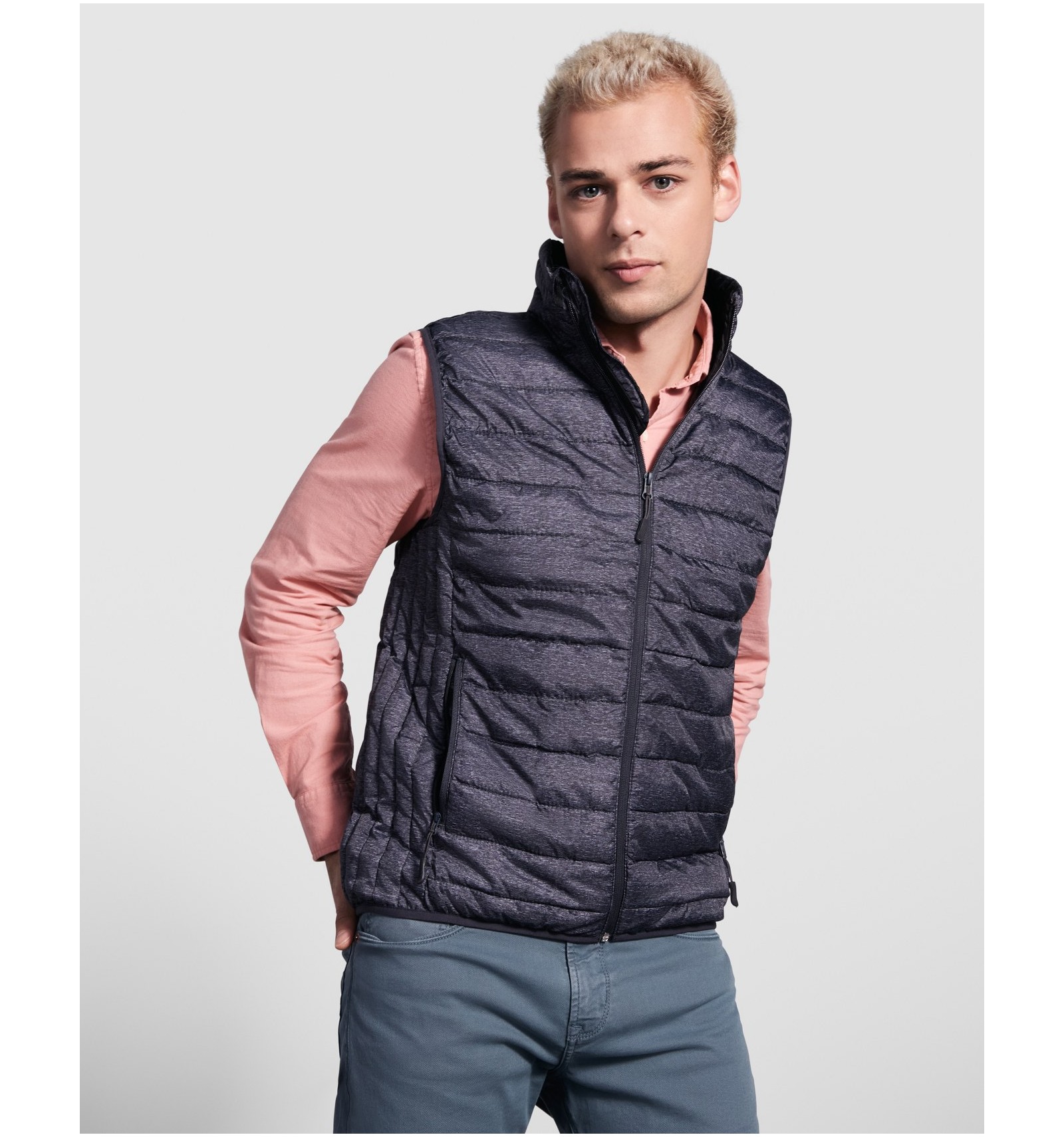 Vestă de bărbați matlasată cu umplutură tact pene.